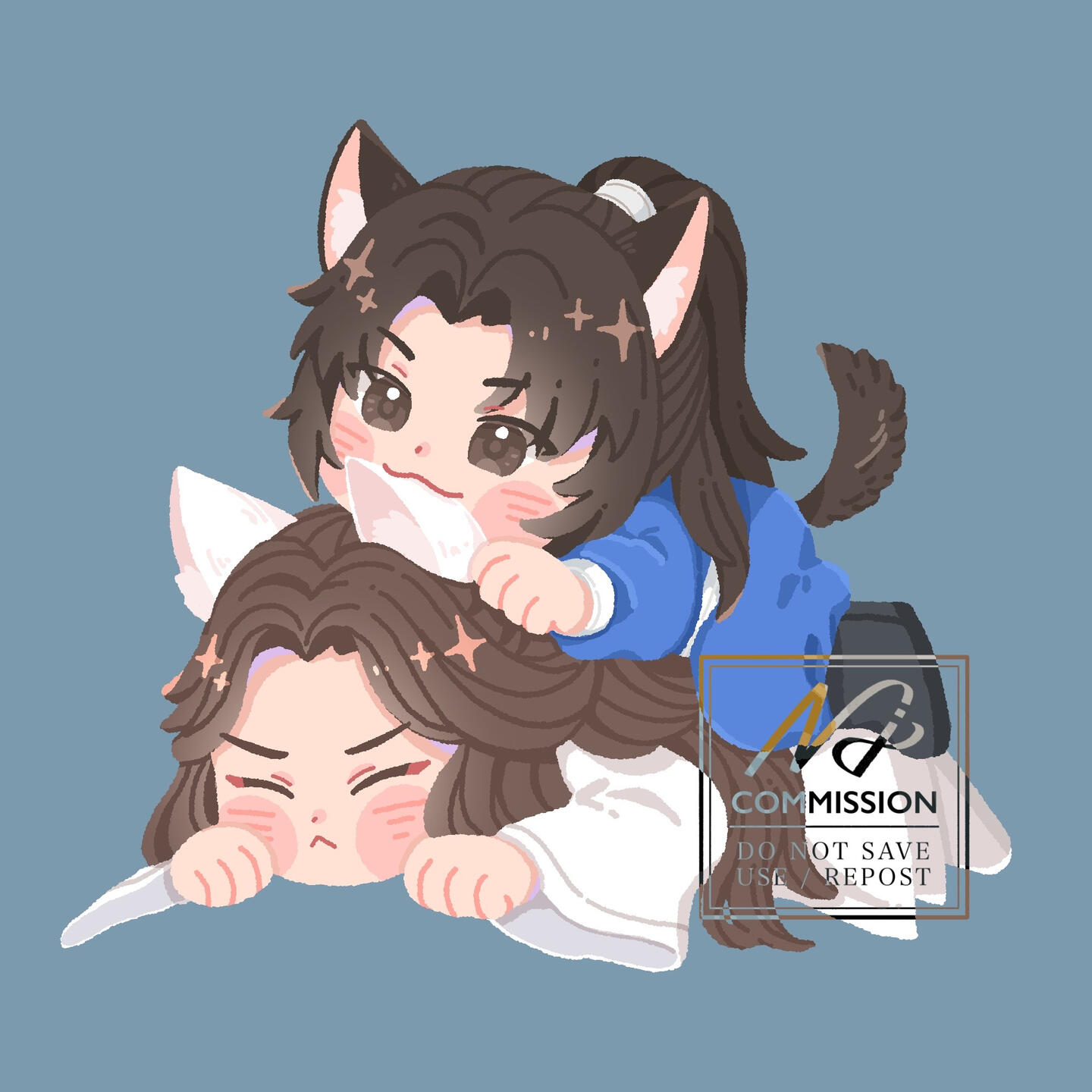 | • ผู้ว่าจ้างสามารถดัดแปลงชิ้นงานเพิ่มเติมได้ (เช่น ตกแต่งพื้นหลัง , ปรับโทนสีรูป) แต่ไม่อนุญาตให้แอบอ้างว่าเป็นผู้วาดเอง | • You can edit the artworks (for example : change the background , adjust the color tone), but do not claim my artworks as yours. |